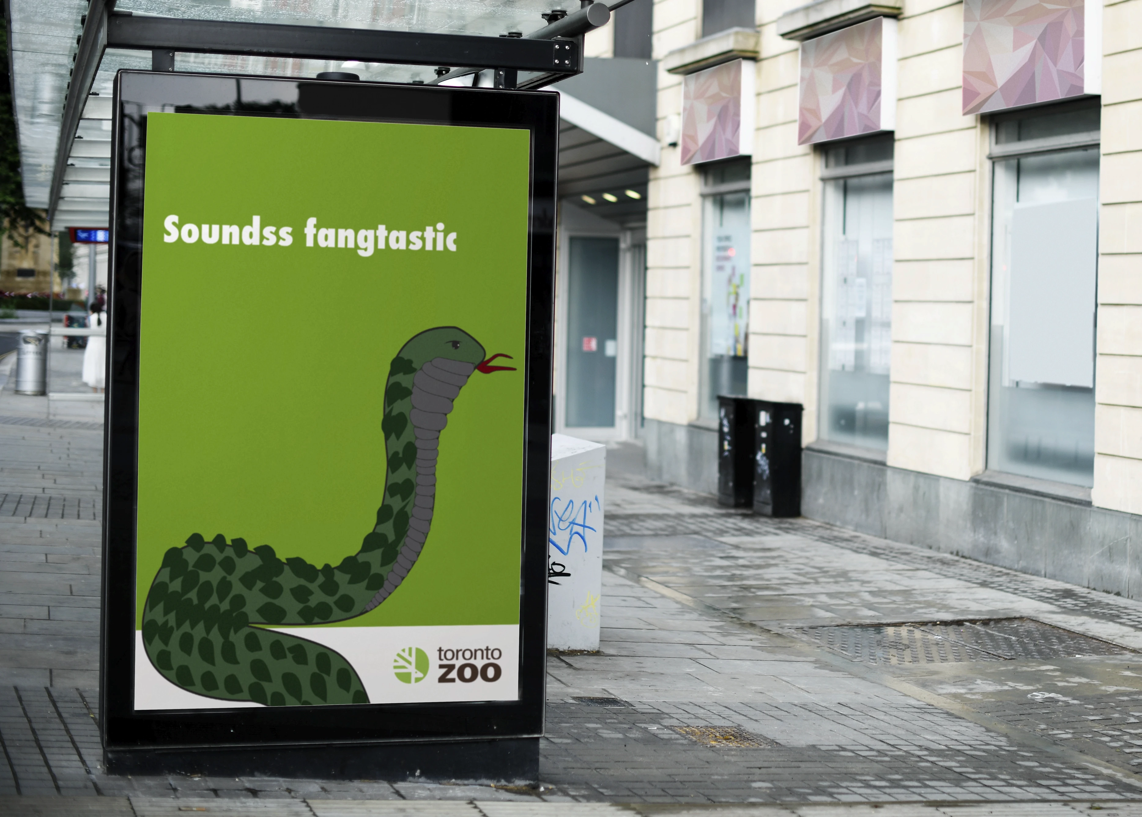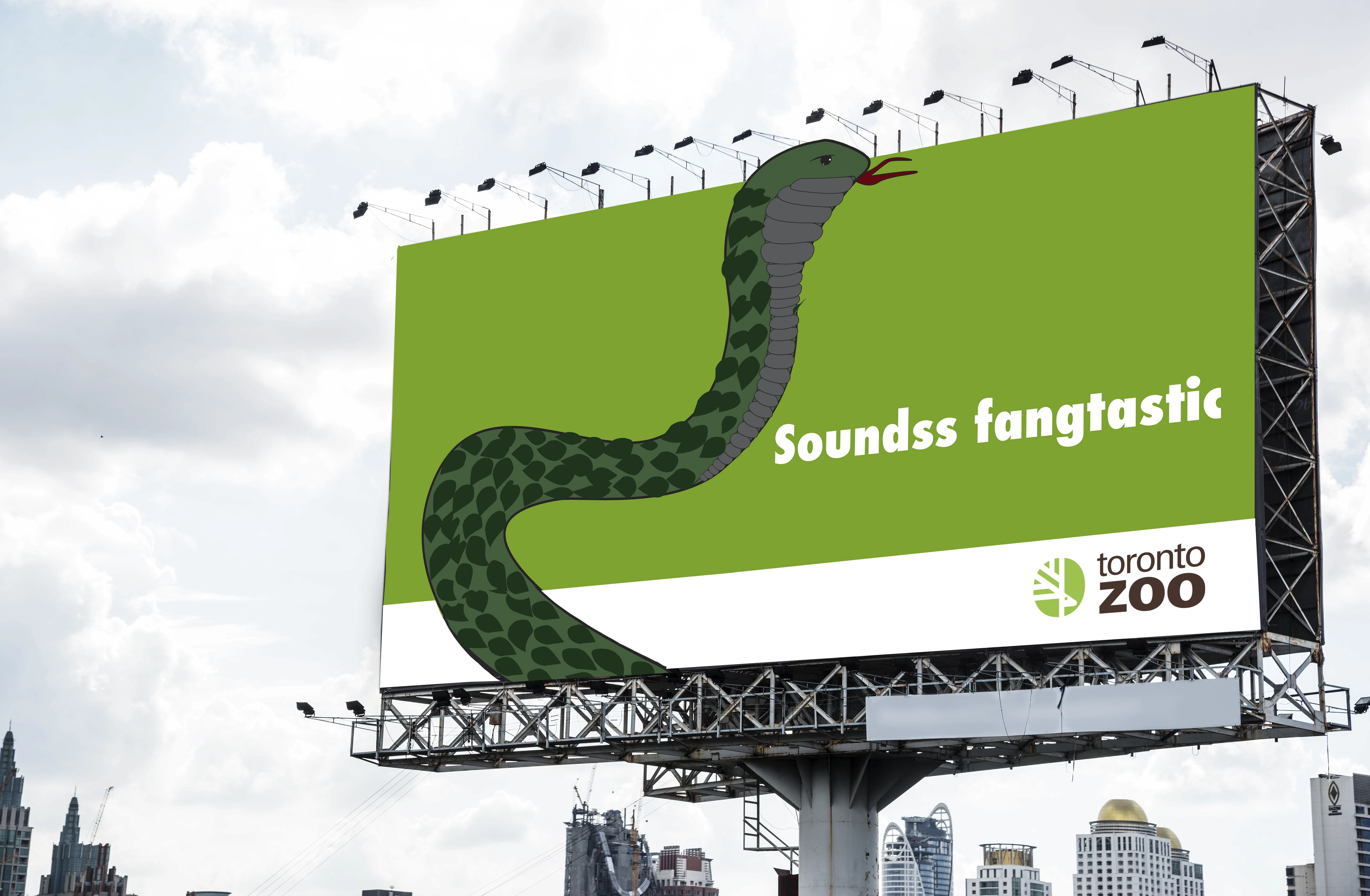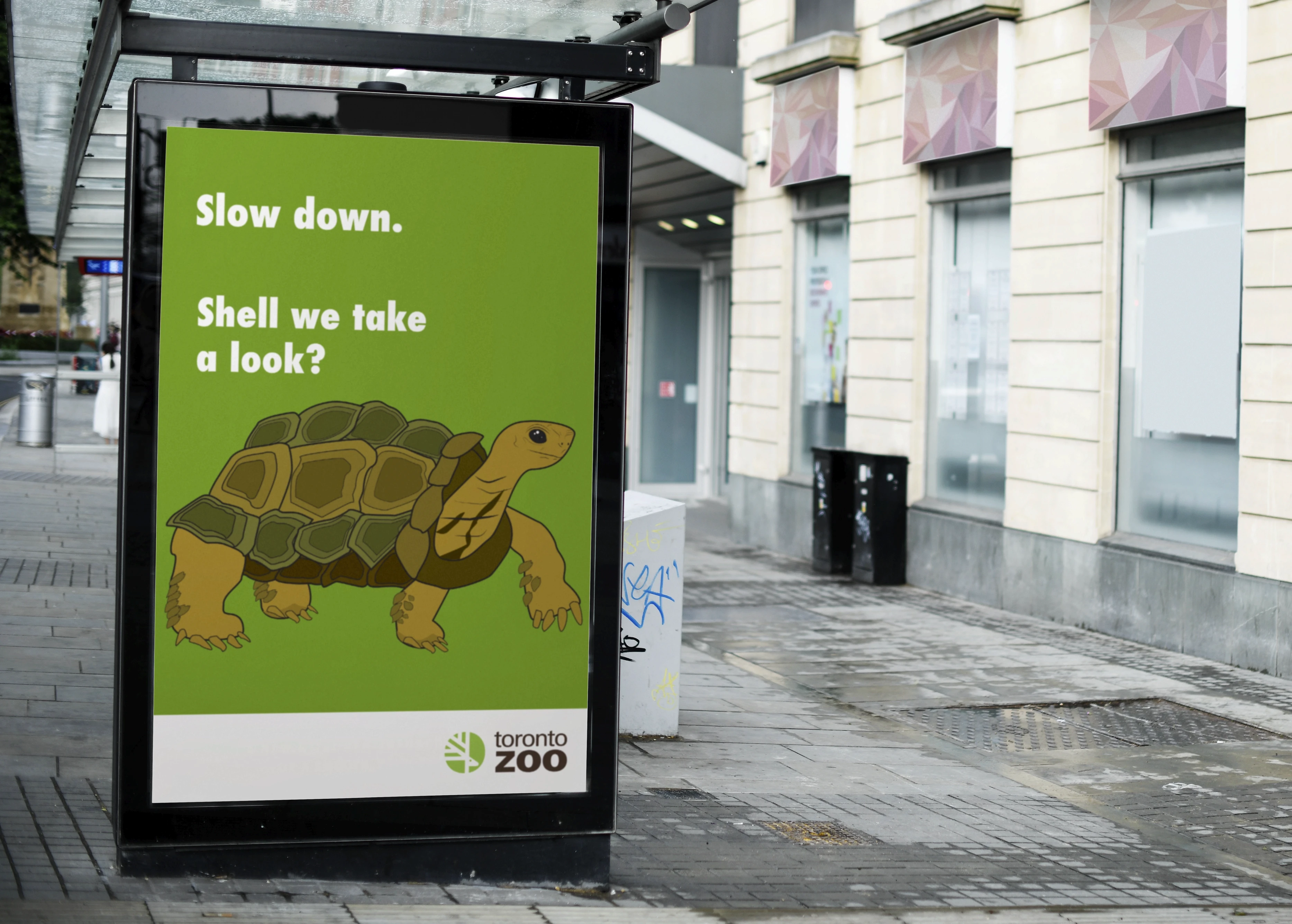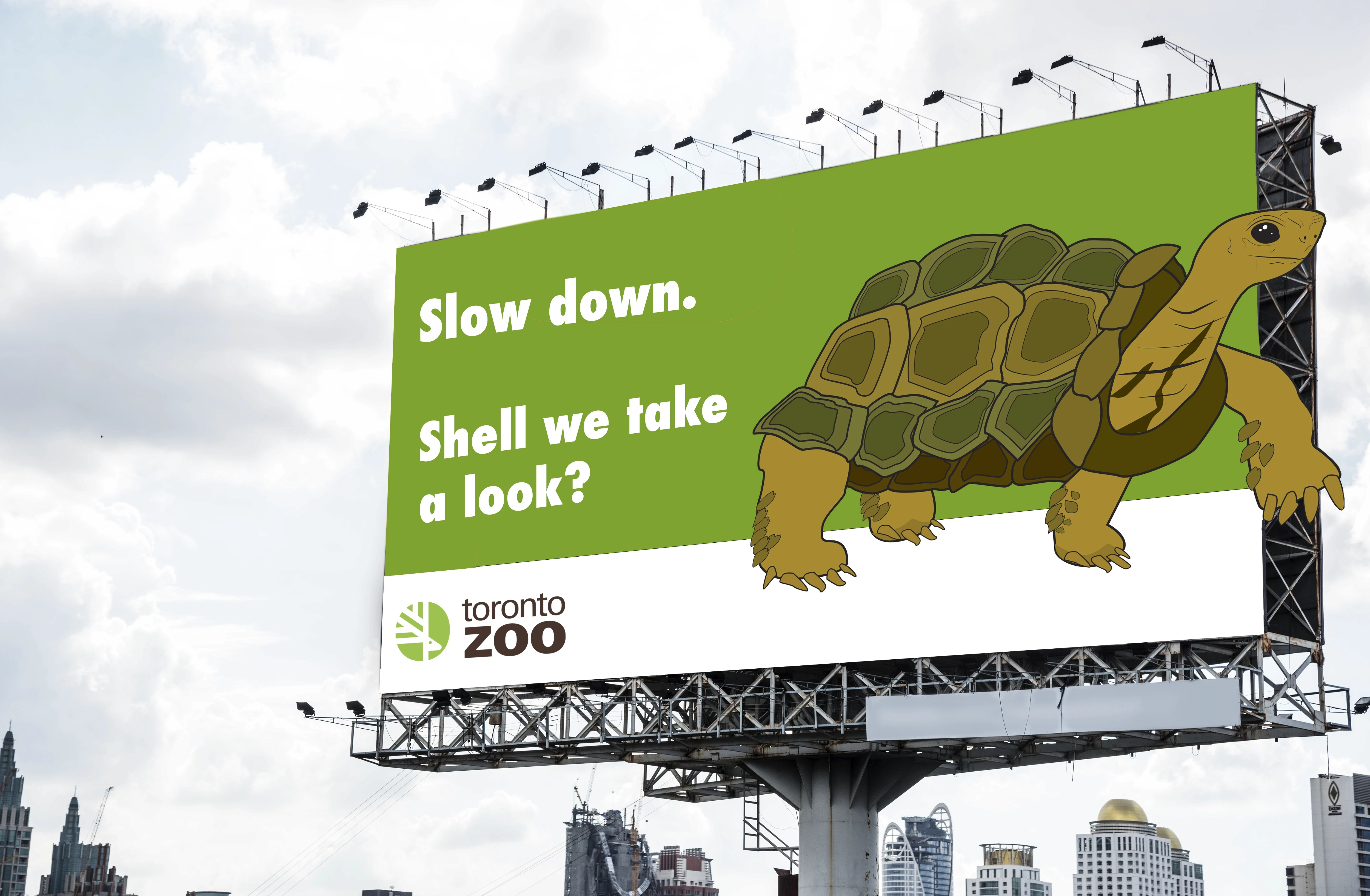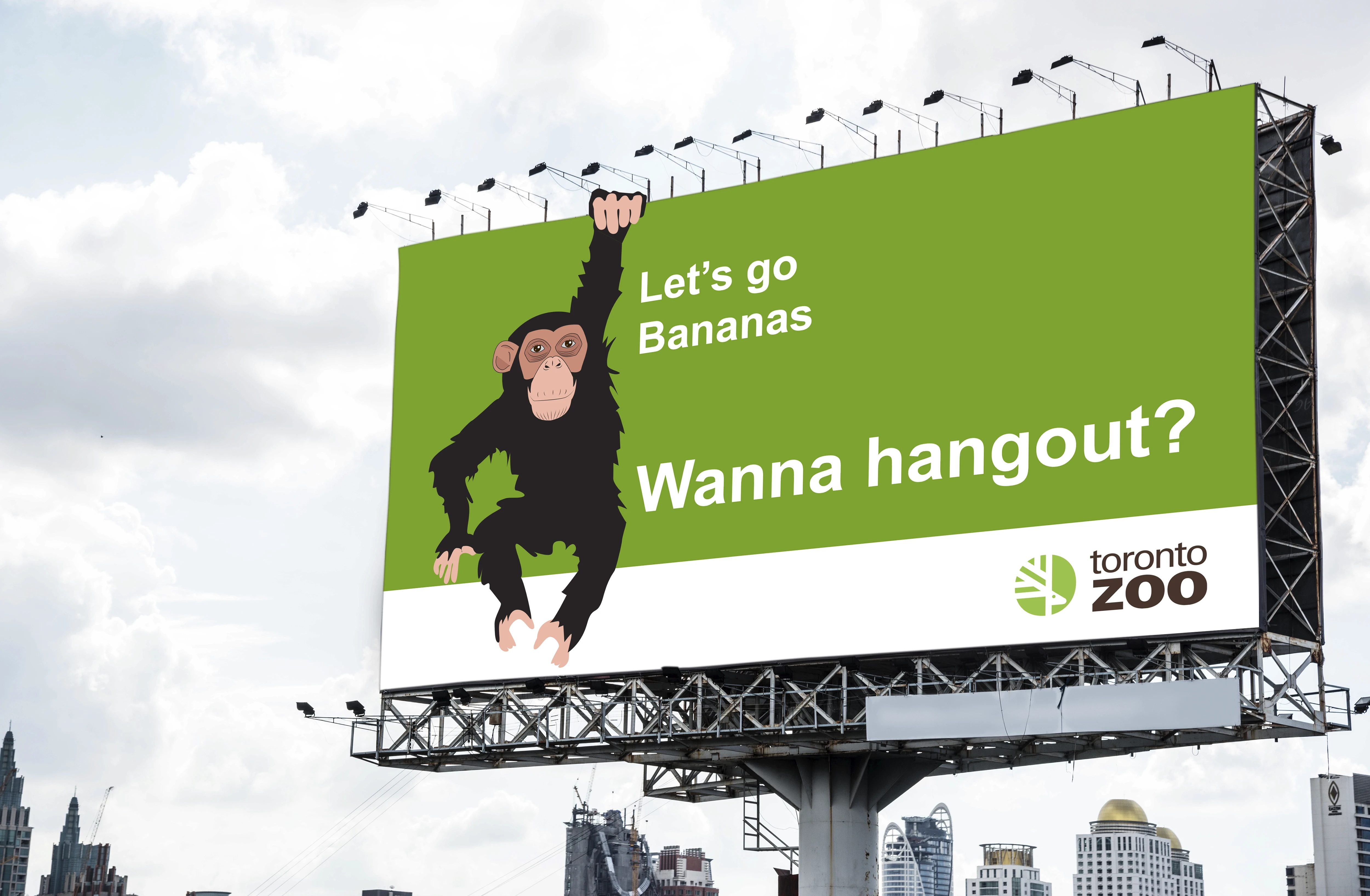 This project explores a playful and approachable advertising campaign created for the Toronto Zoo, designed to capture attention in high-traffic urban spaces. The goal was to promote the zoo as an engaging, fun, and welcoming destination through bold visuals, minimal copy, and character-driven illustrations. The campaign focuses on outdoor advertising formats such as billboards and bus stop shelters.